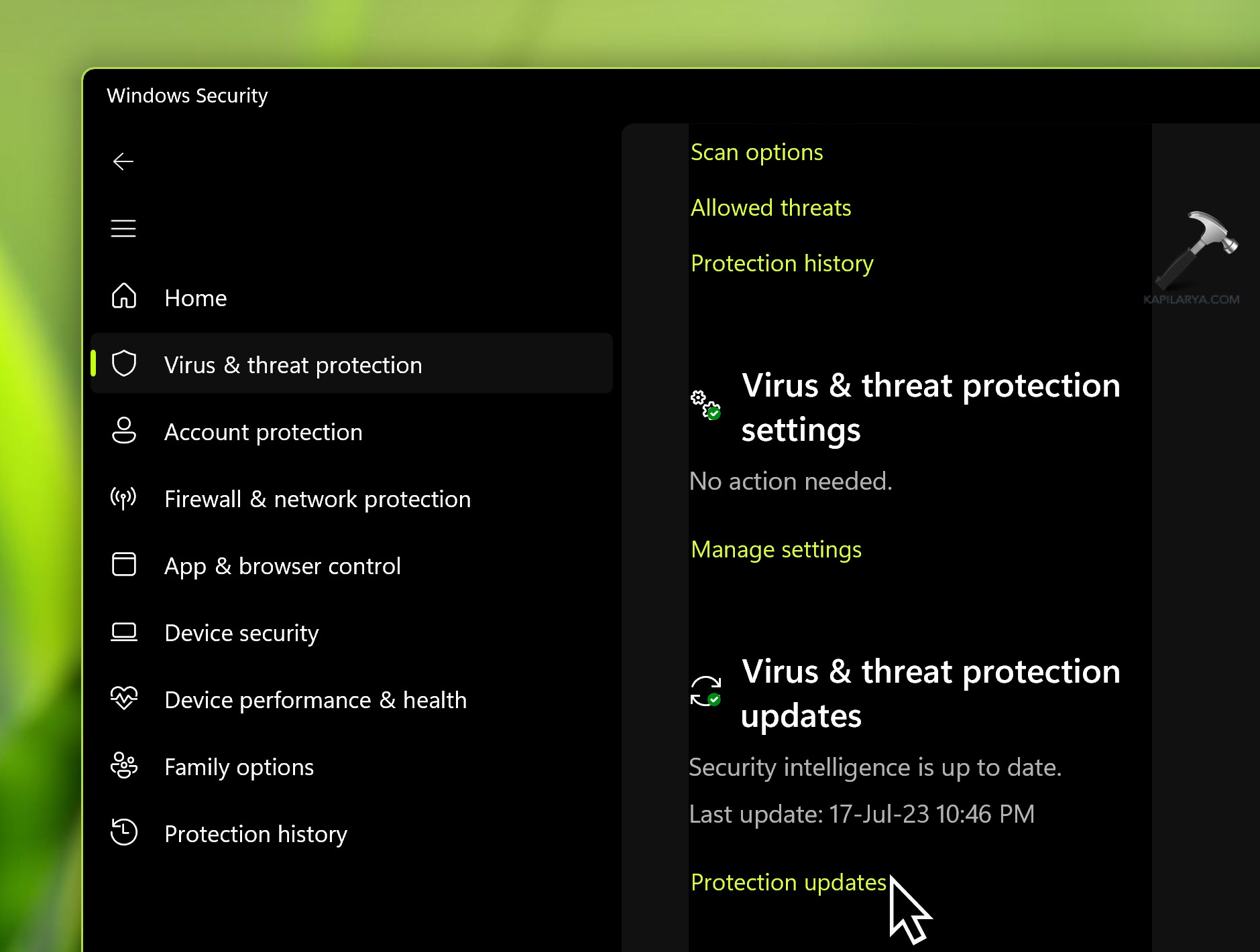 確保 Windows 安全性是最新的,具有最新的定義和軟件更新。