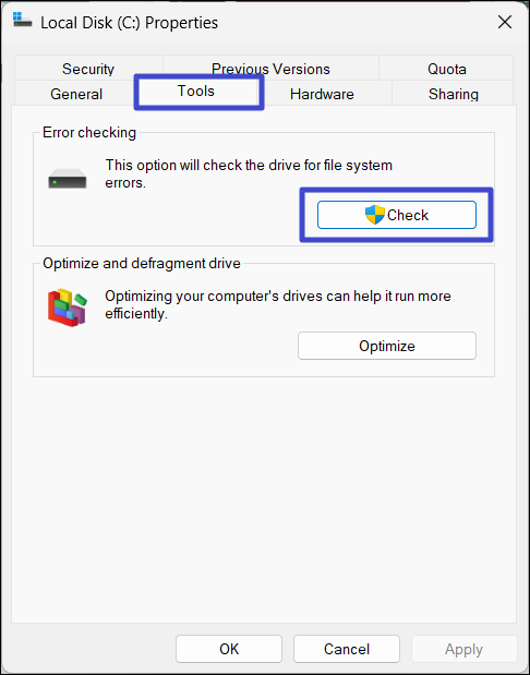 方法 3:運行 Chkdsk 掃描