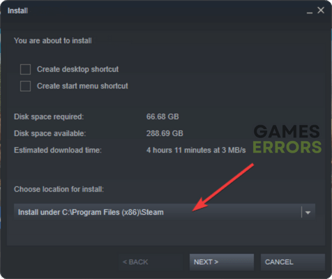 - 選擇位於 SSD 中的安裝位置,然後單擊下一個。