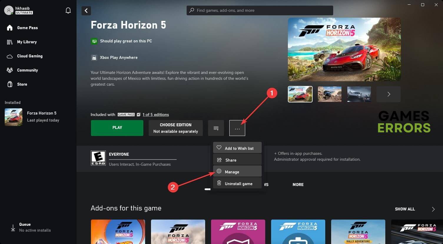 - 打開Xbox 應用程序在 Windows 上並轉到有問題的遊戲。