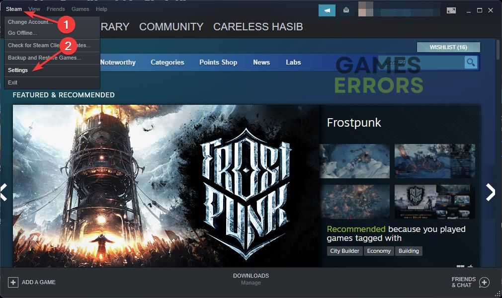 - 打開遊戲客戶端,例如Steam,然後進入其設定。