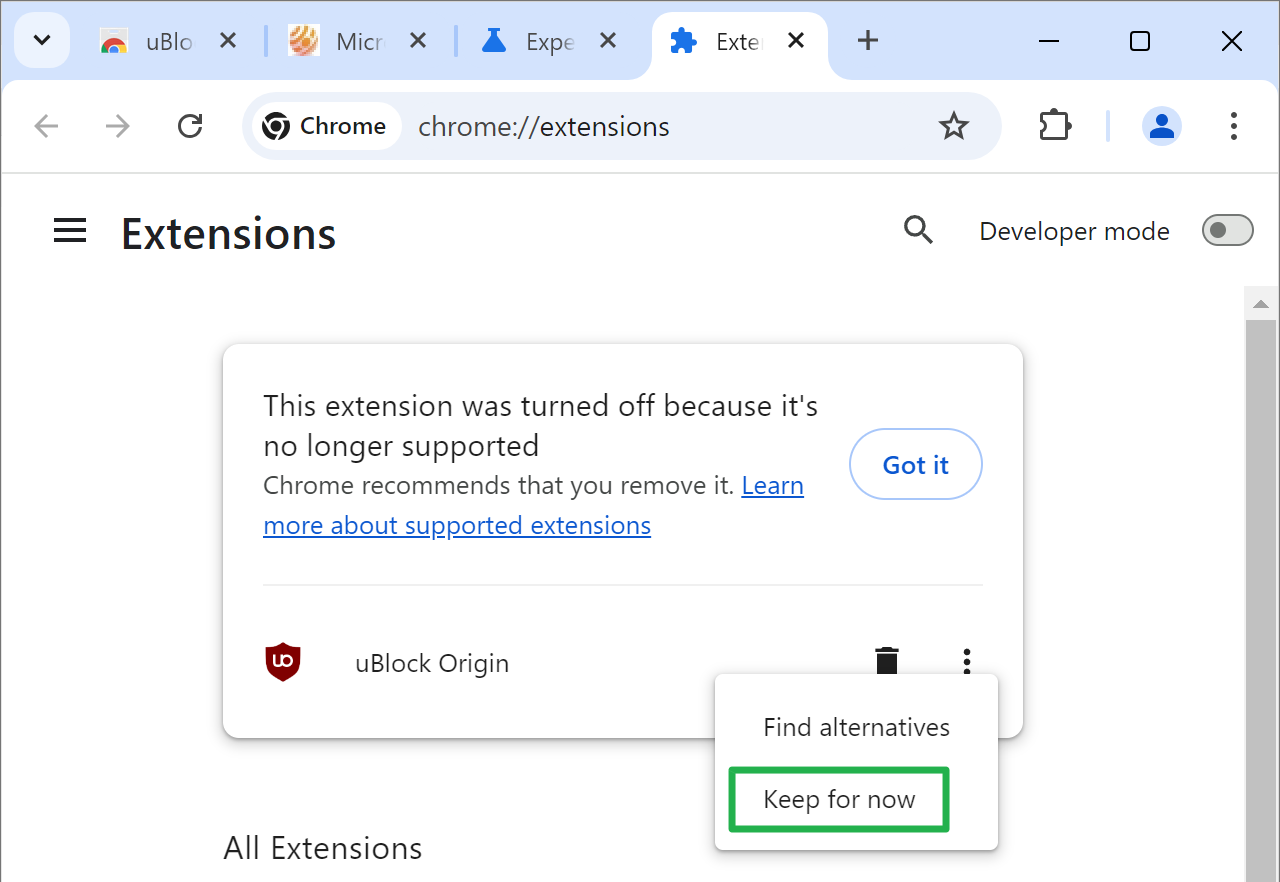 越來越多的 Google Chrome 用戶收到彈出通知,通知他們一個或多個擴展程序因不受支持而已被關閉。