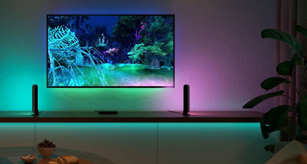 當屏幕從一種顏色轉變為另一種顏色時,您的燈光也會發生變化。顯示器周圍的燈帶可能會發生變化,以反映屏幕上的顏色,而客廳中的各個燈泡也會發生變化,產生一種讓您更深入電影的氛圍。