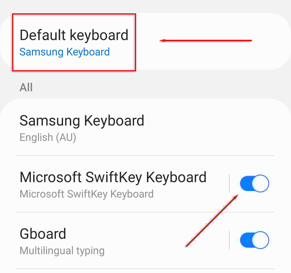 - 將 SwiftKey 設置為默認鍵盤,方法是:設定>綜合管理>鍵盤列表和默認值。