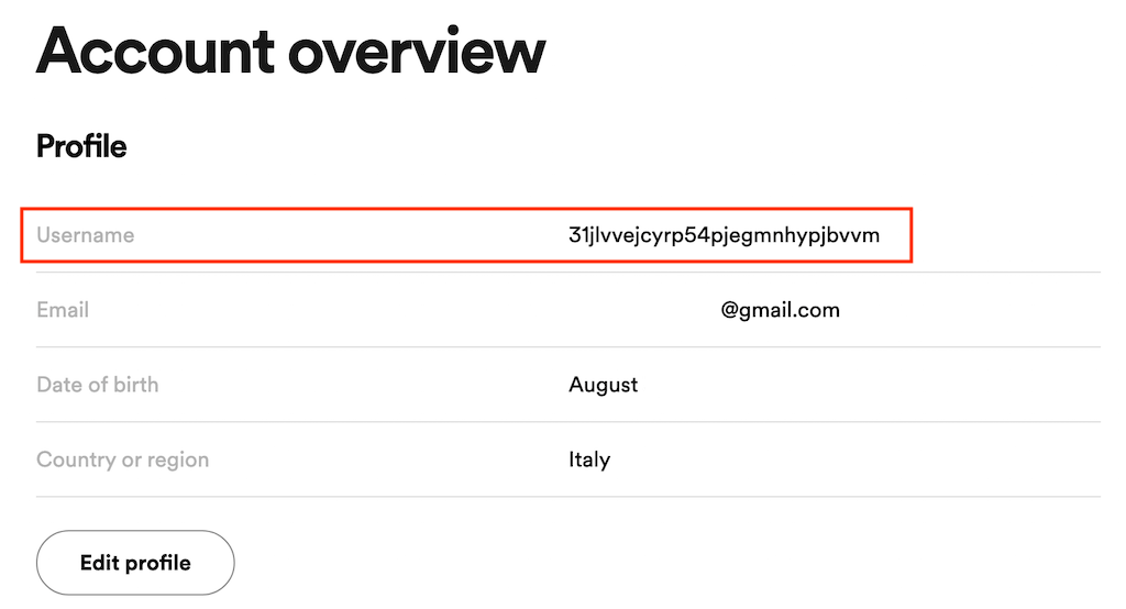- 這將帶您進入包含您的 Spotify 帳戶信息的網頁。在這裡您可以找到您的 Spotify 用戶名。