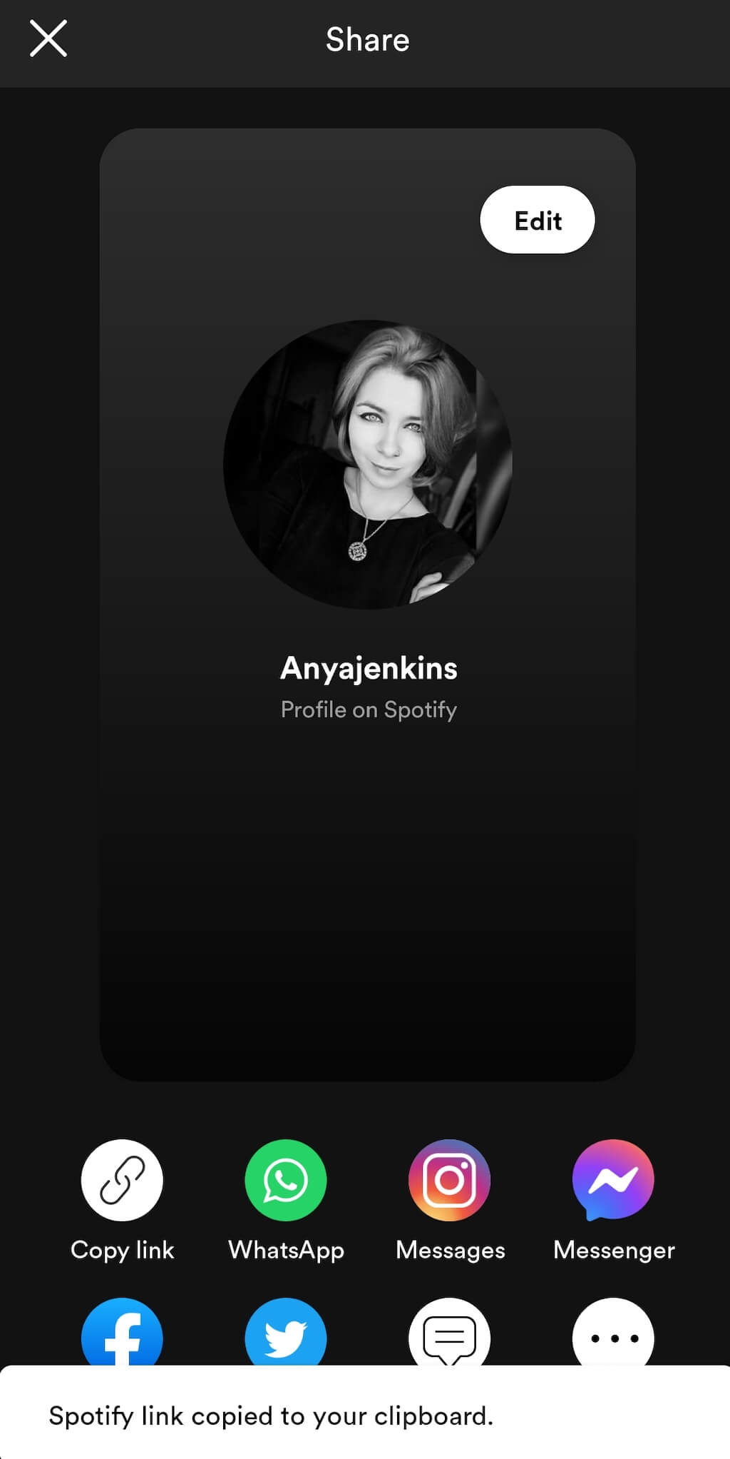 - 此鏈接將包含您的用戶名並指向您的 Spotify 帳戶。