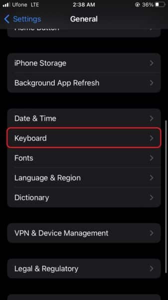 - 下鍵盤菜單,你會發現一個名為鍵盤。點擊它即可訪問您的鍵盤設置。