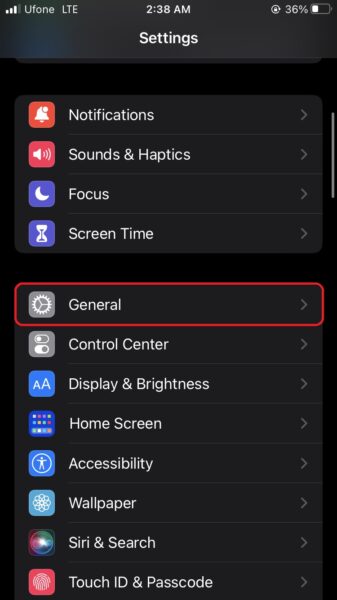 - 在“設置”應用程序中,向下滾動並點擊一般的。