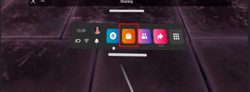 - 提出工具欄按右側觸摸控制器上的 Oculus 按鈕。選擇購物袋圖標代表的商店。