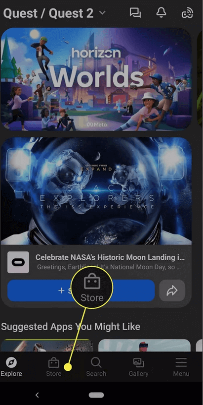 - 打開手機上的 Meta Quest 應用程序並點擊店鋪。