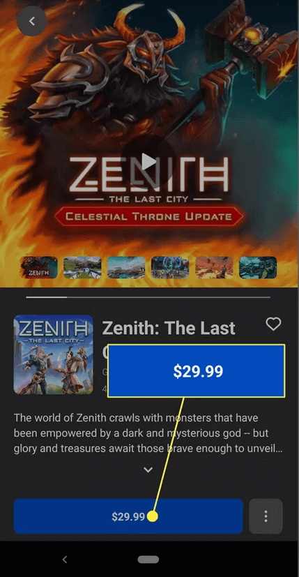 - 當您找到要購買的遊戲時,選擇遊戲屏幕底部的藍色價格按鈕。