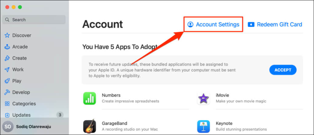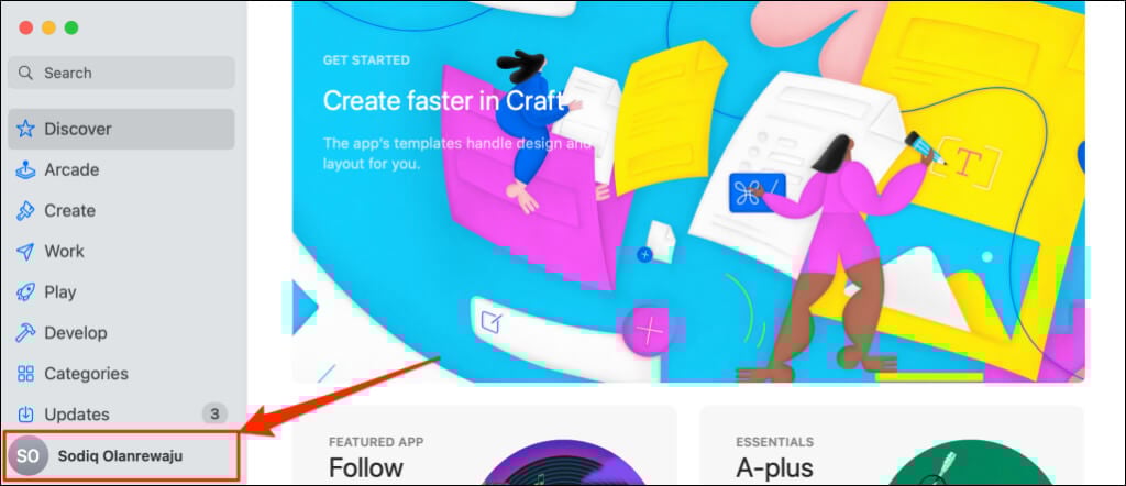 - 打開蘋果應用商店並選擇您的蘋果 ID 名稱在左下角。
