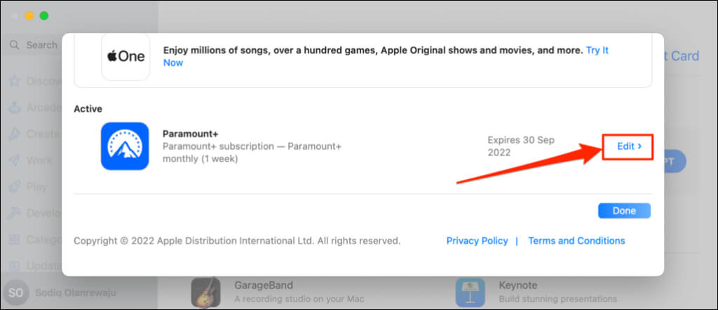 - 選擇編輯旁邊的 Paramount+ 並選擇取消訂閱在下一頁。
