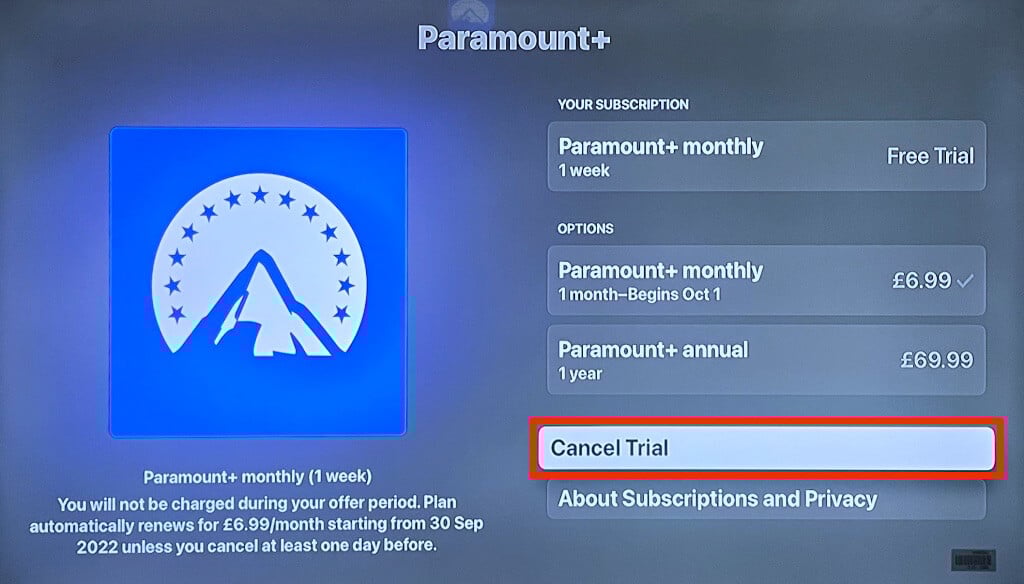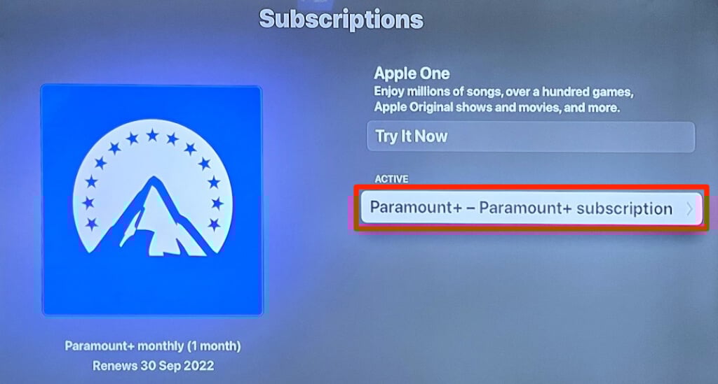 如果您在 Apple TV 上註冊了 Paramount Plus,請按以下步驟取消訂閱。