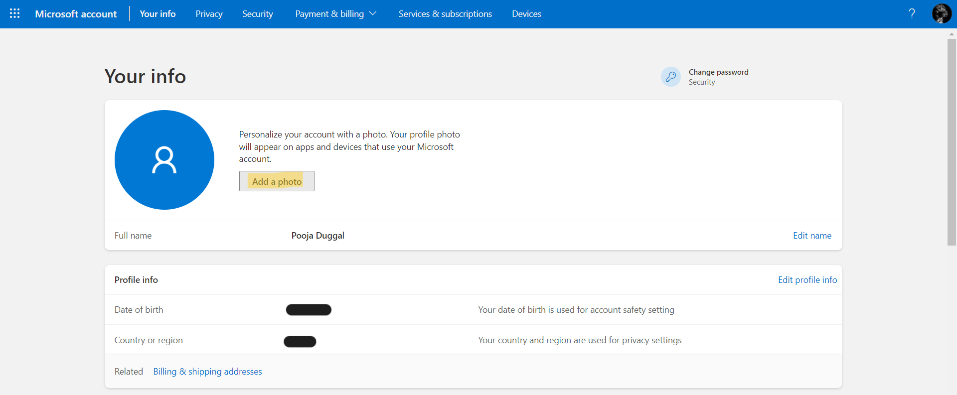1.要更改 Microsoft 帳戶的帳戶圖片,請轉到官方 Microsoft 帳戶個人資料頁面 (https://account.microsoft.com/profile)。如果您尚未登錄,請登錄您的 Microsoft 帳戶。