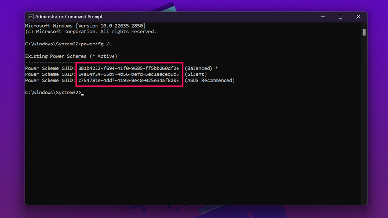 powercfg /L3.這將顯示所有電源計劃在您的 Windows 11 筆記本電腦上具有獨特的電源方案 GUID對於他們每個人來說。