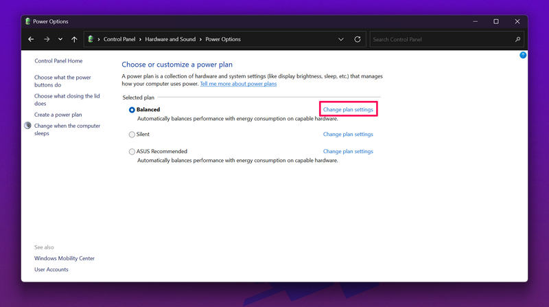 4.標有 的電源計劃*是當前電源計劃您在 Windows 11 筆記本電腦上使用的。