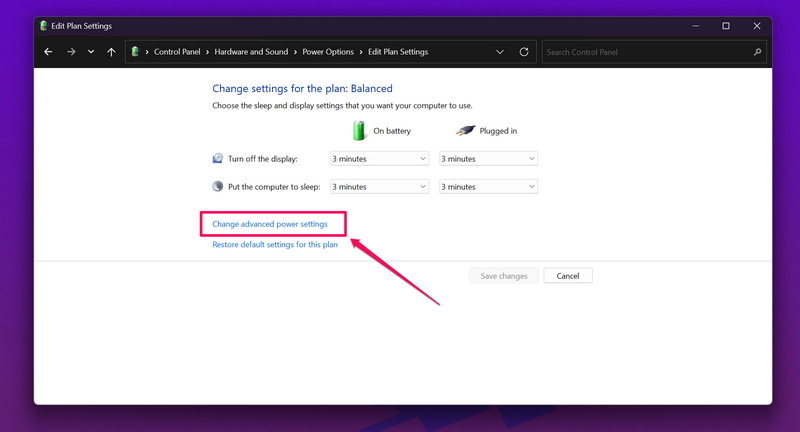 5.在接下來的頁面上,單擊更改高級電源設置按鈕。