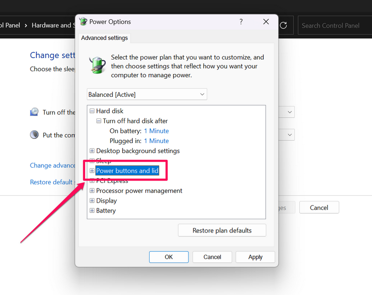 在 Windows 11 中更改開蓋操作的更簡單方法之一是通過值得信賴的控制面板。您會看到打開蓋子的操作是“電源選項”設置的一部分,用戶可以從中選擇預設的電源計劃或更改筆記本電腦上的電池設置。