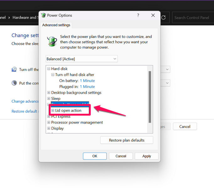 因此,您可以按照以下步驟通過控制面板更改 Windows 11 筆記本電腦上的開蓋操作:
