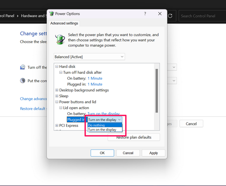 因此,總而言之,打開蓋子操作只有兩個選項 - 不執行任何操作和打開顯示屏(默認)。儘管如此,請查看下面的部分,了解如何在 Windows 11 筆記本電腦上的這些蓋子打開操作之間進行切換。