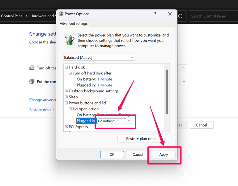 因此,這就是您如何使用筆記本電腦上的控制面板更改 Windows 11 中的蓋子打開操作。