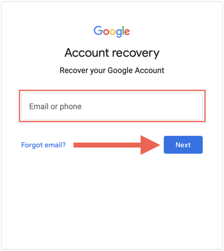 - 參觀Google 帳戶恢復網頁,輸入您的電子郵件地址或電話號碼,然後選擇下一個。或者,選擇忘記密碼?嘗試正常登錄您的帳戶時。