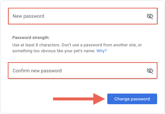 - 輸入您的新密碼,確認它,然後選擇更改密碼。