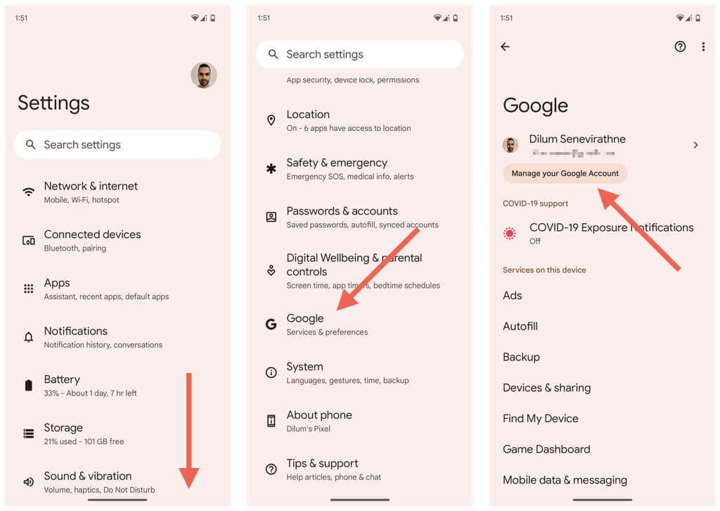 您可以通過 Android 手機上的設備設置更改 Google 帳戶密碼。方法如下: