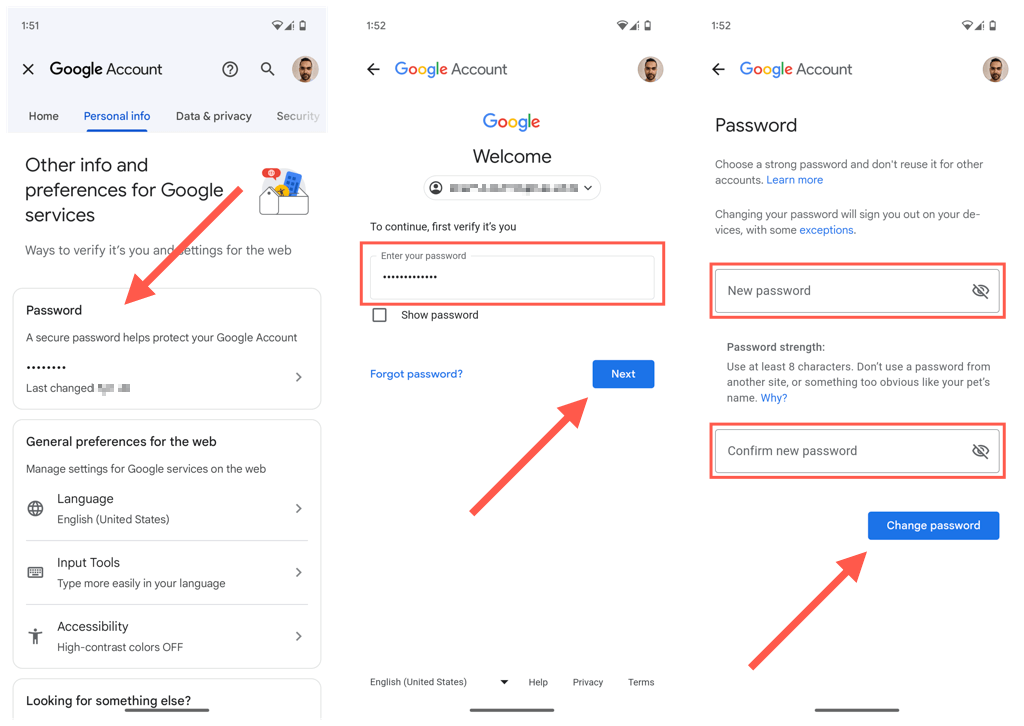 更改您的 Google 帳戶密碼是防止未經授權訪問您的數據的重要一步。如果您認為您的帳戶已被盜用,您必須立即更改密碼。定期更新密碼還可以增強帳戶安全性。