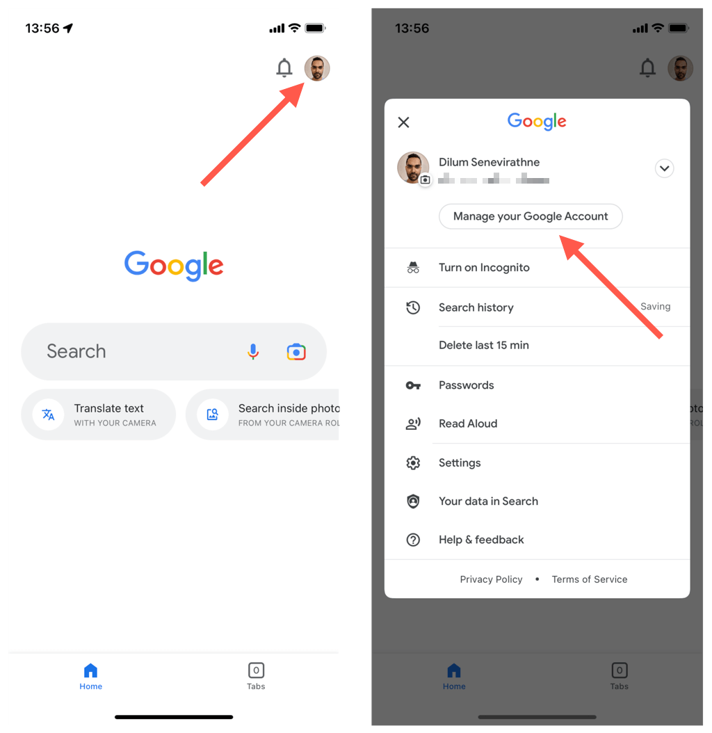 在 iOS 設備上,您可以通過 Gmail、Google Photos 和 Chrome 等 Google 應用更改 Google 帳戶密碼。為此: