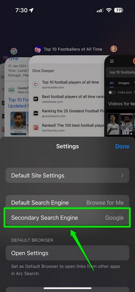 筆記:我已經詳細討論過如果你設置會發生什麼瀏覽找我選項作為本文後面 iPhone 上 Arc Search 中的默認搜索引擎。