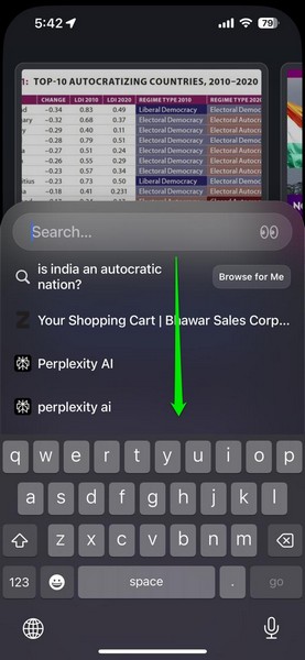 2.現在,由於搜索欄被設計為在 Arc Search 中啟動時自動打開,向下滑動將其關閉。