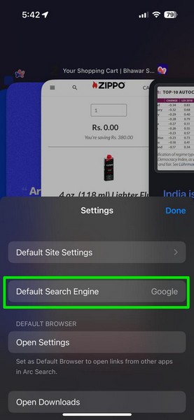 話雖如此,請查看下面的步驟來更改 iPhone 上 Arc Search 中的默認搜索引擎: