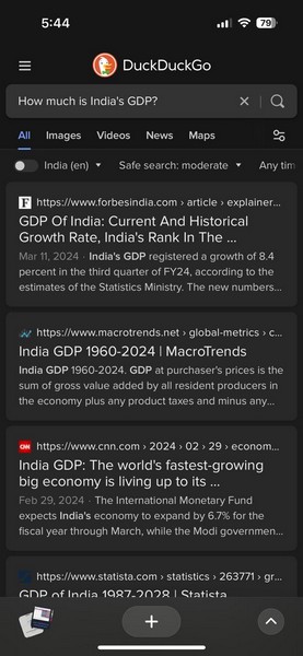 我將 DuckDuckGo 設置為 Arc Search 中的默認搜索引擎,並生成了一個 Browse for Me 網頁。令我驚訝的是,無論我尋找什麼,瀏覽器使用 Google 搜索的來源,而不是 DuckDuckGo 的來源。
