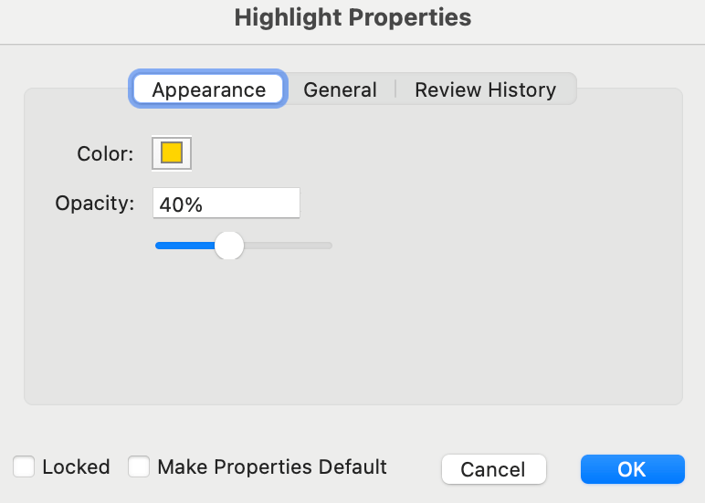 要使新顏色成為所有將來編輯的默認顏色,請選中標記為將屬性設置為默認值在突出顯示屬性窗戶。這可確保您選擇的顏色成為默認的突出顯示顏色以供將來使用。