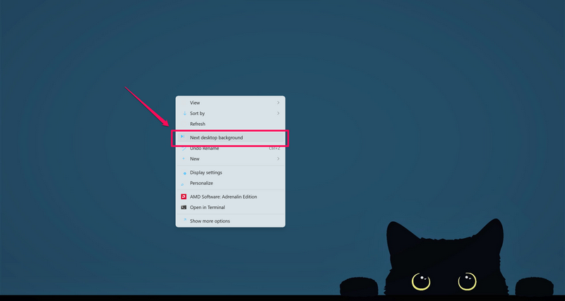 應用後,它將定期自動更換壁紙。儘管您也可以右鍵單擊桌面屏幕並選擇接下來的桌面背景上下文菜單上的選項可手動更改 Windows 11 PC 或筆記本電腦上的壁紙。