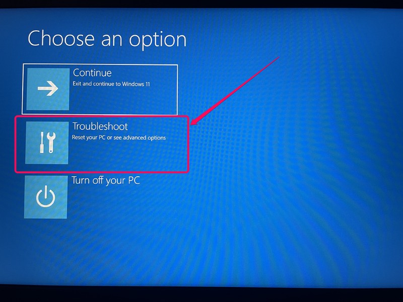 4.現在,您的 Windows 11 PC 或筆記本電腦將直接在高級啟動屏幕。在這裡,選擇故障排除選項。