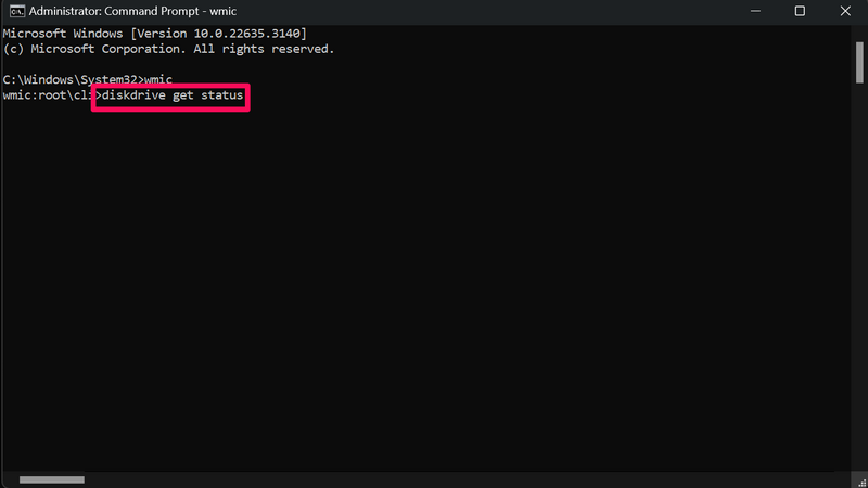 如果 WMIC 工具顯示“好的”狀態,這意味著您的硬盤健康狀況良好,無需擔心。但是,如果您的硬盤狀態顯示為“預測失敗”,這意味著您的硬盤健康狀況面臨風險,您應該考慮立即進行備份。