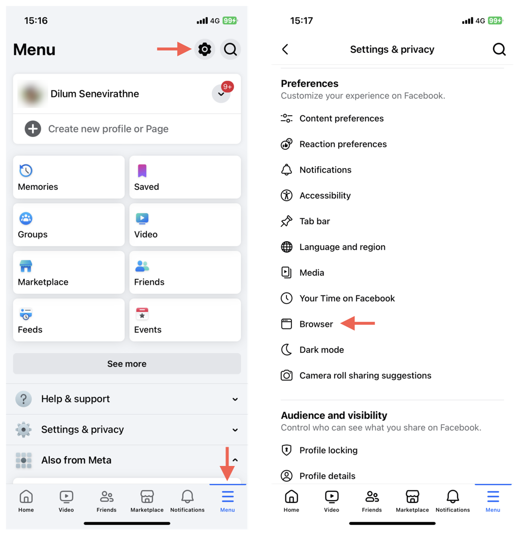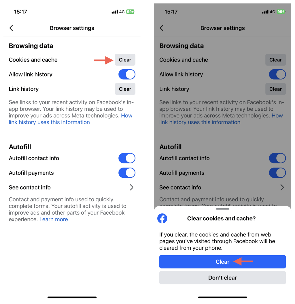 Facebook 應用程序有一個內置瀏覽器,可讓您打開鏈接並與之交互。幸運的是,如果您在加載鏈接時遇到問題,該應用程序提供了一個清除緩存的選項。
