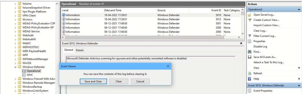 事件查看器軟件是查看設備事件日誌的有用工具,還允許您手動刪除 Defender 保護歷史記錄。方法如下: