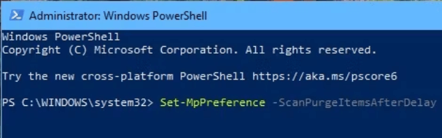 Set-MpPreference -ScanPurgeItemsAfterDelay 5