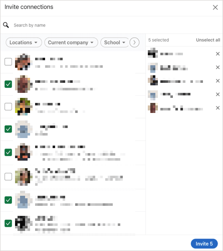 選中您想要加入群組的聯繫人的複選框並選擇邀請。