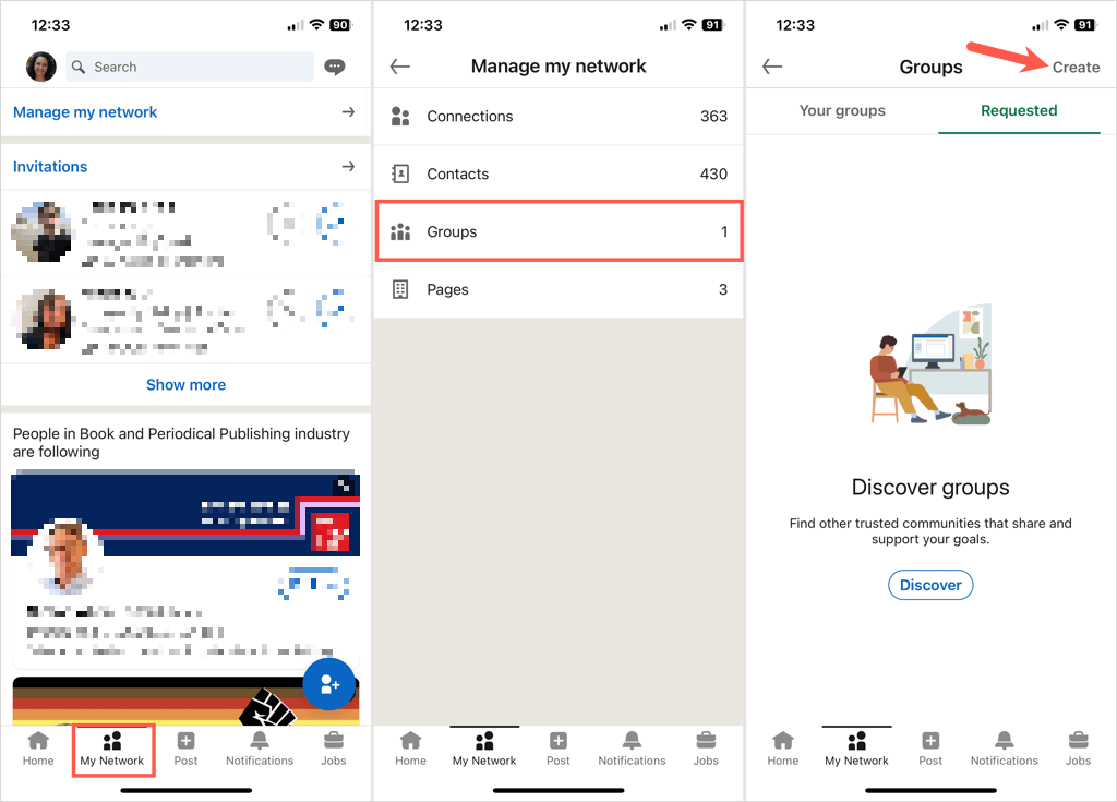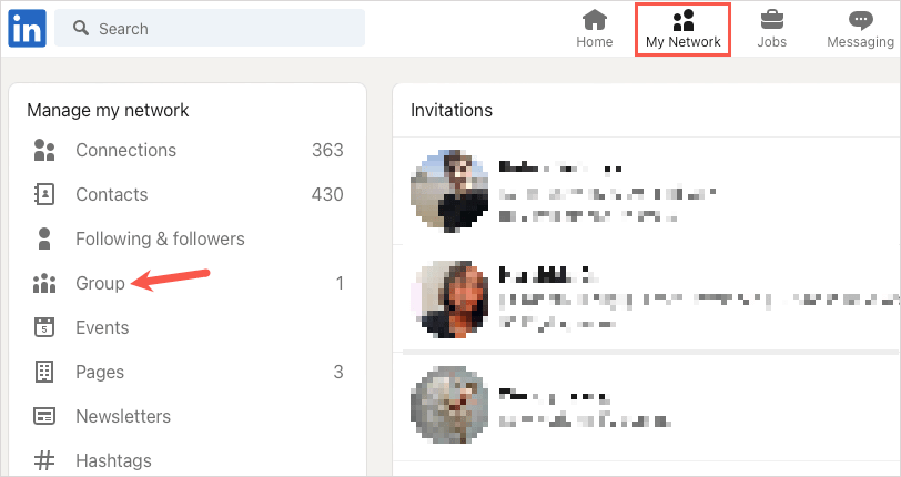 - 如果您在該位置沒有看到群組,請選擇我的網絡選項卡。然後,選擇團體位於左側“管理我的網絡”下方。