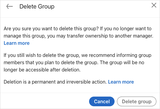 提示: 你可以轉讓集團所有權如果您願意,可以將其發送給該群組的所有者之一,而不是將其刪除。