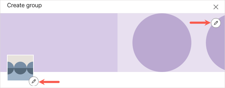 徽標和封面圖片(可選):選擇左側徽標圖像或右上角封面照片旁邊的編輯圖標(鉛筆)以添加其中一個、另一個或兩者。這可以幫助您的成員一目了然地區分您的小組。