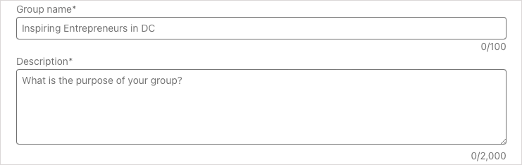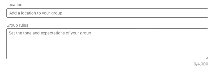 描述(必需):輸入組的描述,長度最多為 2,000 個字符。使其具有足夠的描述性,以便您的目標受眾和潛在的新成員了解該小組的目的。