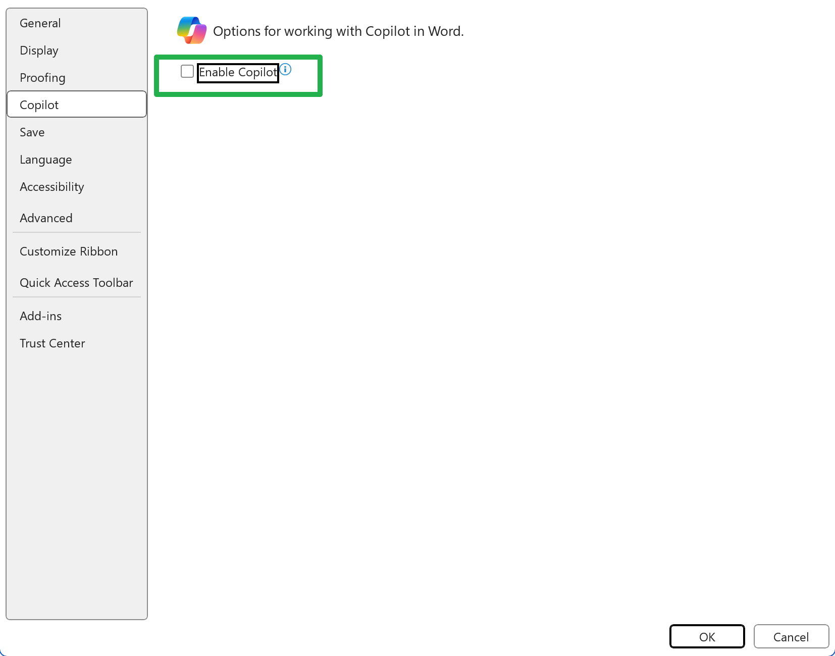 您可以隨時通過再次選中 Microsoft Word 選項中的“啟用 Copilot”框來恢復更改。