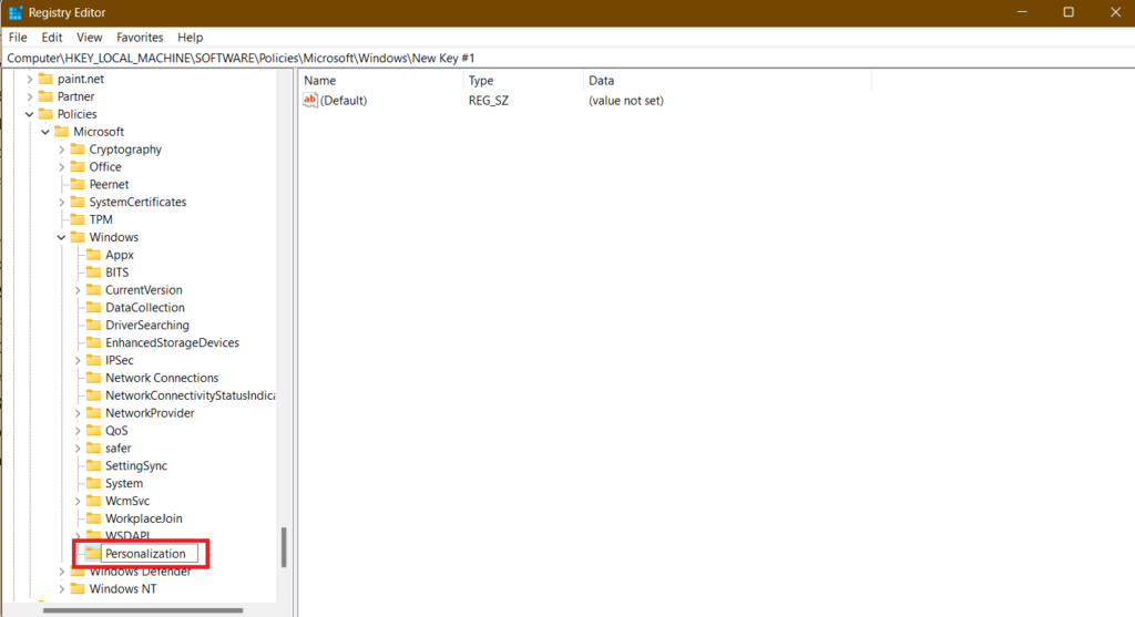 5.右鍵單擊個性化,然後選擇新的其次是DWORD(32 位)值。