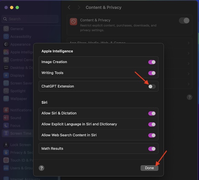 在 macOS Sequoia 15 中阻止 Mac 上的 ChatGPT Siri 擴展